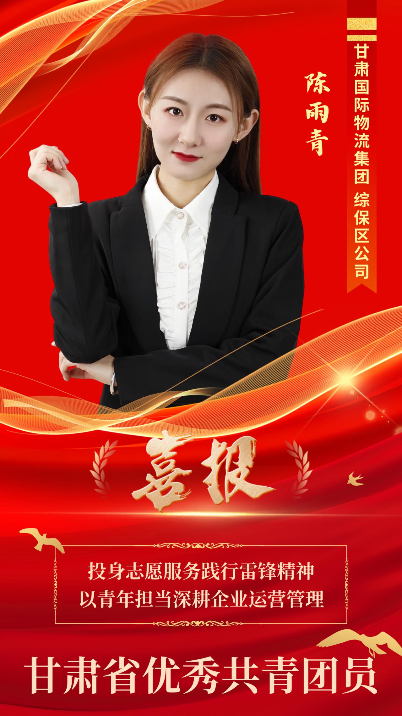 近日,甘肅省人力資源和社會保障廳、甘肅省教育廳、共青團甘肅省委、甘肅省青年聯合會、甘肅省少工委等部門聯合發(fā)文,對全省各領域涌現出的先進青年集體和個人進行表彰,甘肅國際物流集團路港公司李偉智獲“甘肅青年五四獎章”榮譽稱號,綜保區(qū)公司陳雨青獲“甘肅省優(yōu)秀共青團員”榮譽稱號。